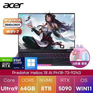 | 에이서 프레데터 헬리오스 18 AI | 가격 정보 | Ultra9, RTX 5090, 128GB RAM |